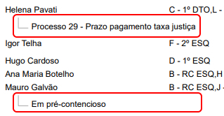 No caso de um processo de contencioso, haverá indicação do número do processo e do estado em que se encontra; no caso de um processo de pré-contencioso, haverá apenas a menção de é um processo de pré-contencioso.