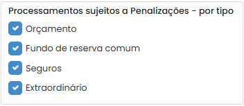 Na área de parametrização de penalizações na ficha de um condomínio, existe uma secção com o título "Processamentos sujeitos a Penalizações - por tipo":