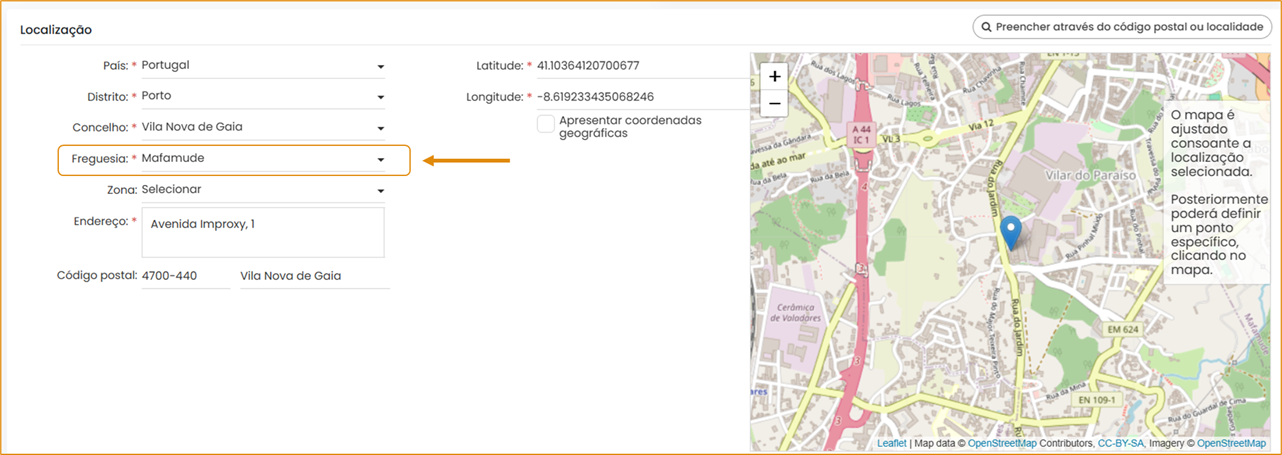 O efeito prático desta alteração é a manutenção da informação da localização do empreendimento atualizada, permitindo, ainda, filtrar os empreendimentos em função da freguesia onde se localizem: