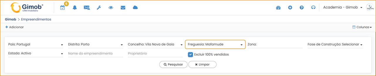 A alteração das freguesias surte efeitos nos registos de empreendimentos, pré-angariações, imóveis e oportunidades.