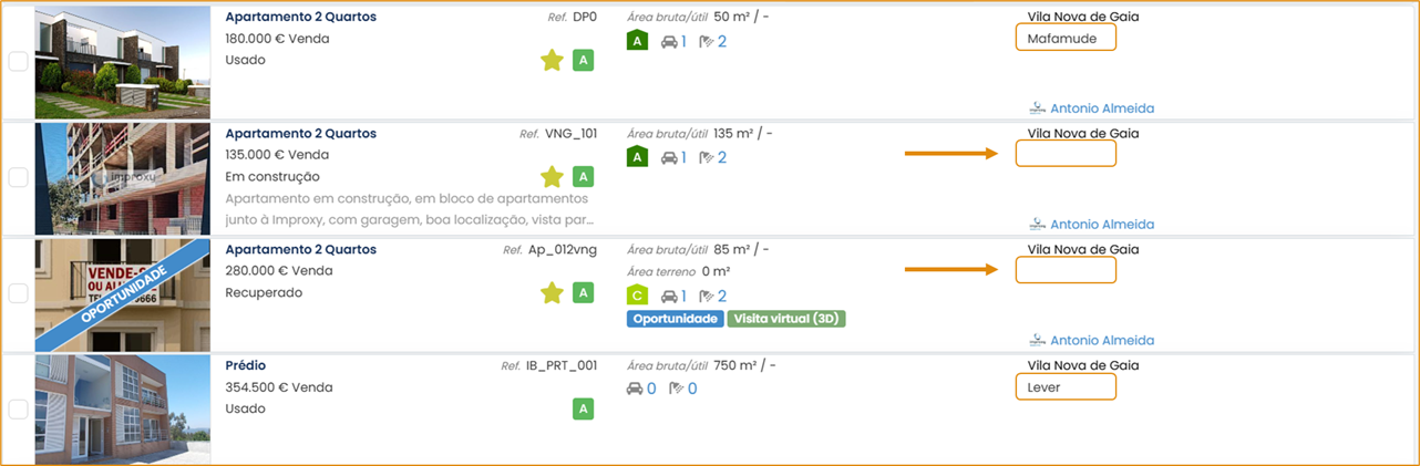 No caso dos imóveis, esta informação é particularmente sensível, uma vez que, se não tiverem definida a freguesia, os imóveis não poderão ser exportados para os portais imobiliários