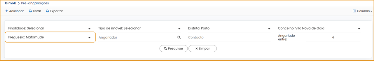 O efeito prático desta alteração é a manutenção da informação da localização dos imóveis pré-angariados permitindo, ainda, filtrar as pré-angariações em função da freguesia onde os imóveis se localizem: